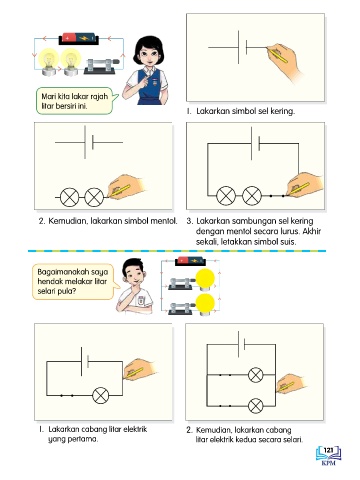 2. Kemudian, lakarkan simbol mentol. 3. Lakarkan sambungan sel kering