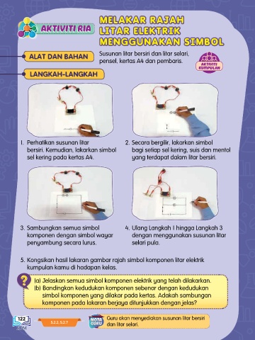 1. Perhatikan susunan litar 2. Secara bergilir, lakarkan simbol