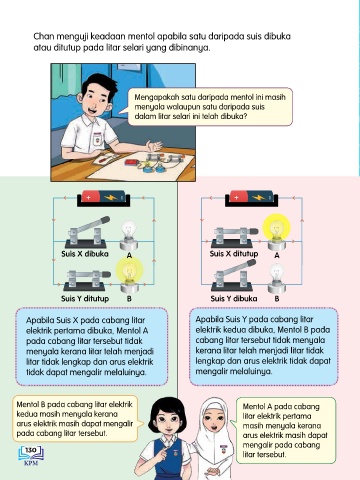 Chan menguji keadaan mentol apabila satu daripada suis dibuka