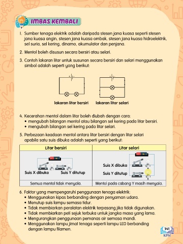 5. Perbezaan keadaan mentol antara litar bersiri dengan litar selari