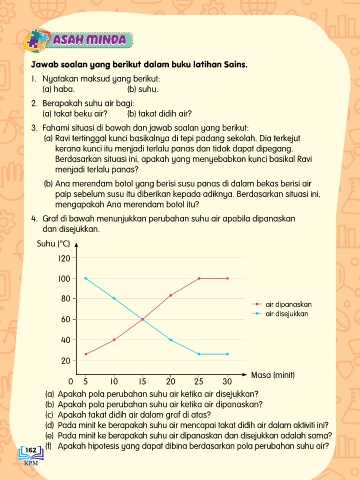4. Graf di bawah menunjukkan perubahan suhu air apabila dipanaskan