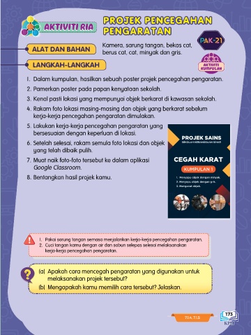 1. Dalam kumpulan, hasilkan sebuah poster projek pencegahan pengaratan.