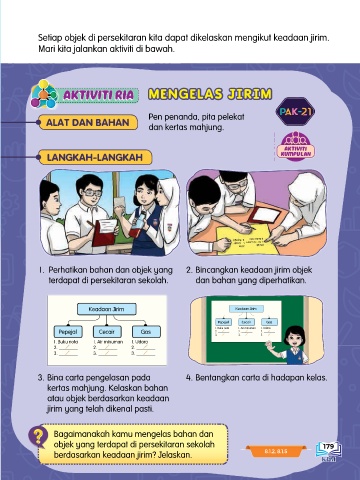 1. Perhatikan bahan dan objek yang 2. Bincangkan keadaan jirim objek