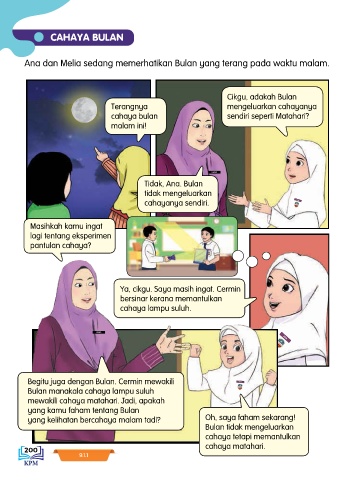 Ana dan Melia sedang memerhatikan Bulan yang terang pada waktu malam.