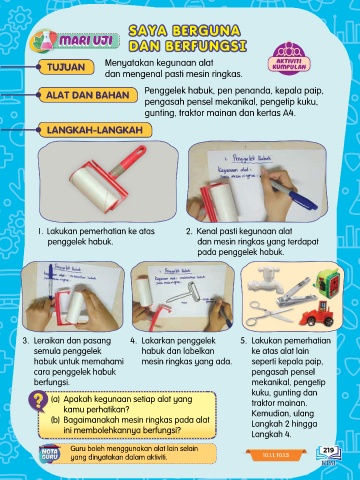 1. Lakukan pemerhatian ke atas 2. Kenal pasti kegunaan alat