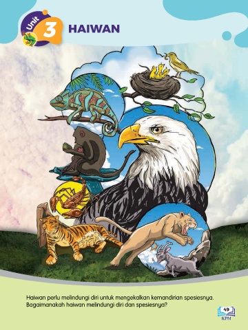 Unit HAIWAN Haiwan perlu melindungi diri untuk mengekalkan kemandirian spesiesnya. Bagaimanakah haiwan melindungi diri dan spesiesnya? 49 49
