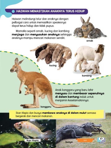 Ikan tilapia dan buaya membawa anaknya di dalam mulut semasa