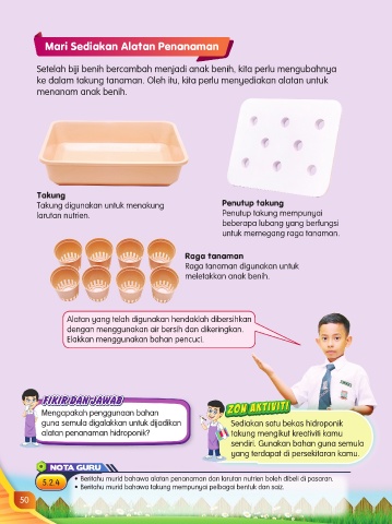 • Beritahu murid bahawa alatan penanaman dan larutan nutrien boleh dibeli di pasaran.