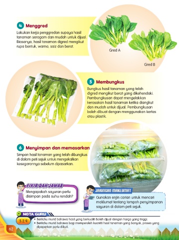 • Beritahu murid bahawa hasil yang berkualiti boleh dijual dengan harga yang tinggi.