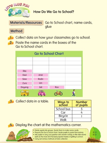 TEACHER’S • Prepare the Go to School chart. Guide pupils to paste their names. 8.1.1