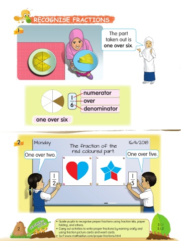 2 2 • Carry out activities to write proper fractions by naming orally and 3.1.2