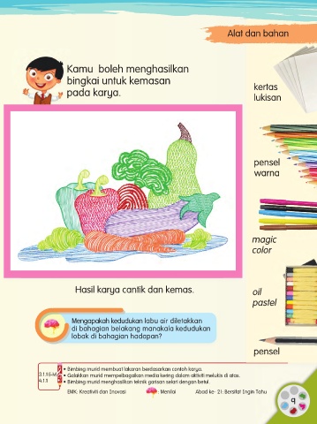 3.1.1 (i-iv) • Galakkan murid mempelbagaikan media kering dalam aktiviti melukis di atas.