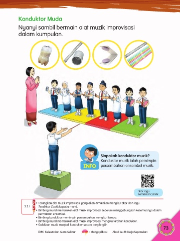 • Bimbing murid memainkan alat muzik improvisasi mengikut arahan konduktor.