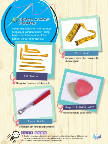 semasa menggunakan dan menyelenggarakan alatan dan bahan jahitan.