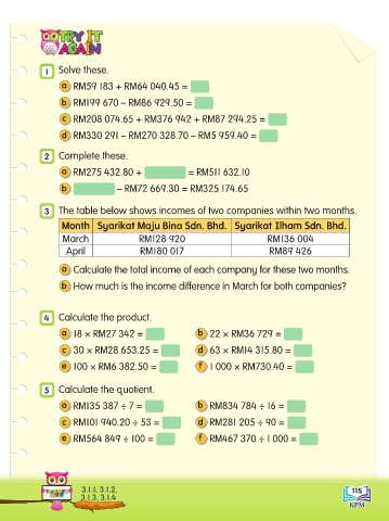 c RM101 940.20 ÷ 53 = d RM281 205 ÷ 90 =