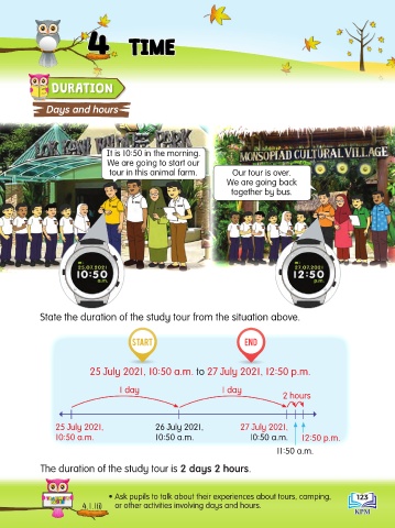 • Ask pupils to talk about their experiences about tours, camping, 123