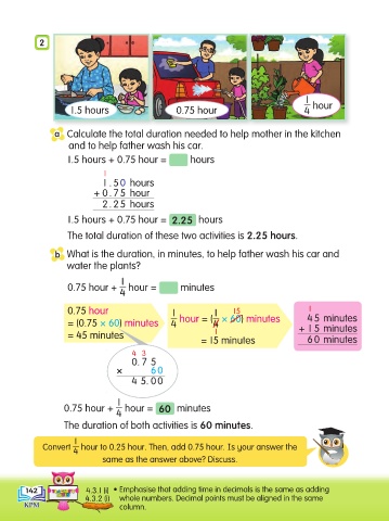 142 4.3.1 (i) • Emphasise that adding time in decimals is the same as adding