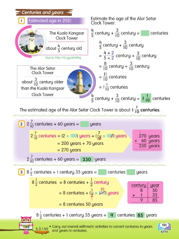 • Carry out mental arithmetic activities to convert centuries to years 151