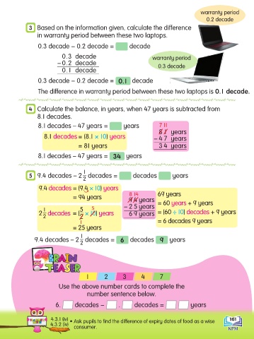 4.3.1 (iv) • Ask pupils to find the difference of expiry dates of food as a wise 161