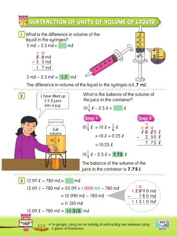 5.3.3 • In groups, carry out an activity of subtracting two volumes using