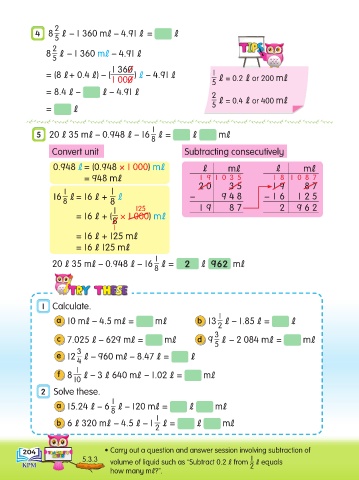 204 • Carry out a question and answer session involving subtraction of
