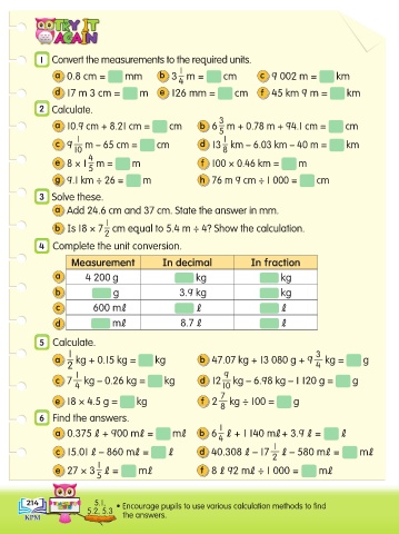 214 5.1, • Encourage pupils to use various calculation methods to find