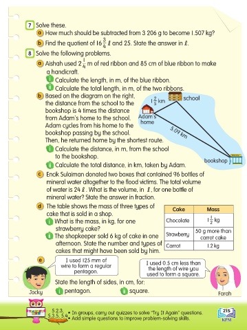 5.2.3, • In groups, carry out quizzes to solve “Try It Again” questions. 215