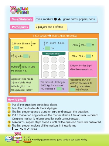 5.3, 5.4 • Modify questions on the game cards to suit pupils’ ability.