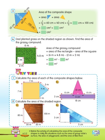 • Relate the activity of calculating the area of the composite 225