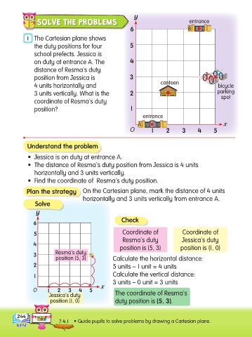 7.4.1 • Guide pupils to solve problems by drawing a Cartesian plane.