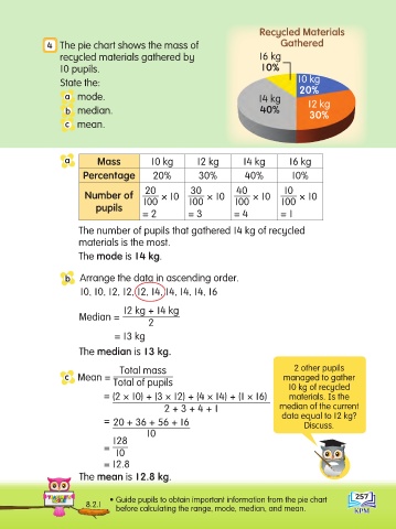 • Guide pupils to obtain important information from the pie chart
