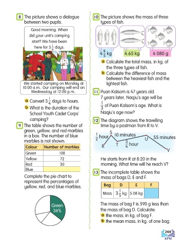 8 The picture shows a dialogue 10 The picture shows the mass of three