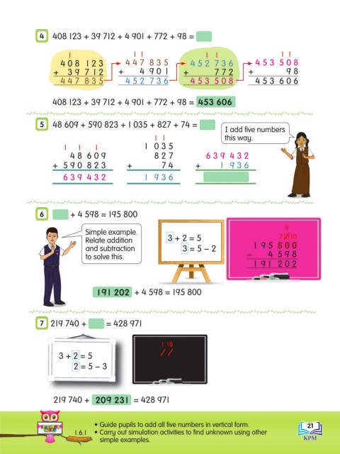 • Guide pupils to add all five numbers in vertical form. 21