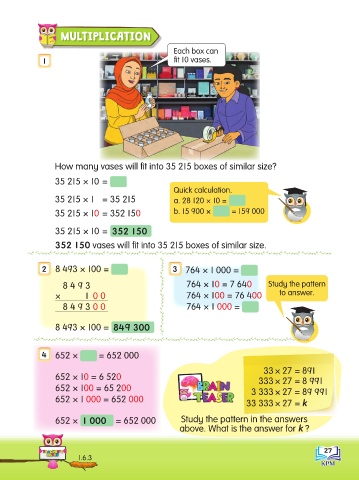652 × 1 000 = 652 000 Study the pattern in the answers