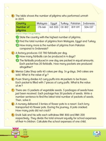 ii Find the total number of pilgrims from Malaysia, Egypt and Turkey.