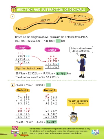• Relate mixed operations involving addition and subtraction of decimals to daily