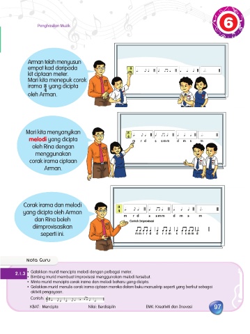 Galakkan murid mencipta melodi dengan pelbagai meter.
