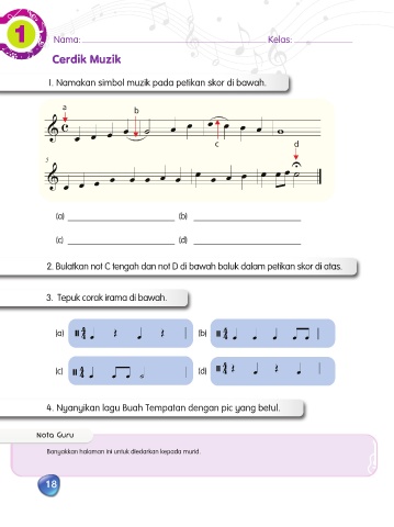 1. Namakan simbol muzik pada petikan skor di bawah.
