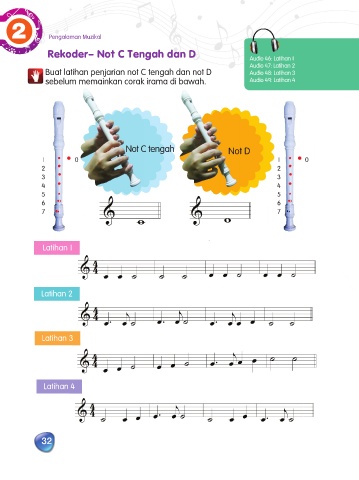 Buat latihan penjarian not C tengah dan not D Audio 48: Latihan 3