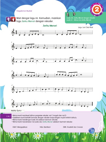Audio 46: Latihan 1 Mari dengar lagu ini. Kemudian, mainkan Audio 50 : Jariku Menari dengan rekoder