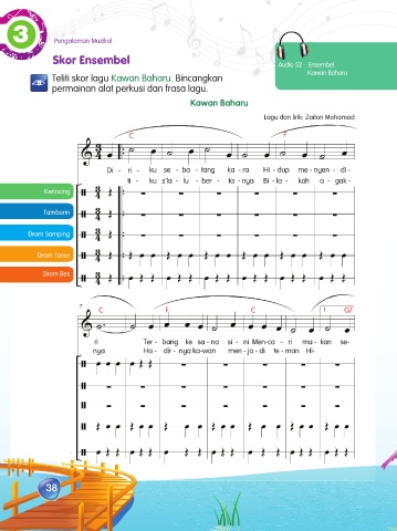 Teliti skor lagu Kawan Baharu. Bincangkan