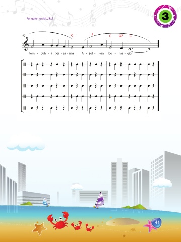 1 3 3 Pengalaman Muzikal C F C G7 C tem - puh - i ber - sa - ma A - sal - kan ba - ha - gia Kerincing Tamborin Dram Samping Dram Tenor Dram Bes 41