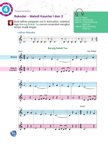 Buat latihan penjarian not D. Kemudian, mainkan Audio 94 : Instrumental Burung