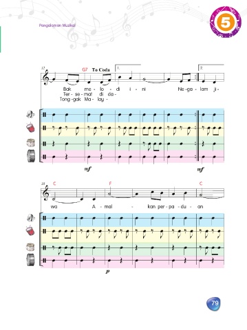 1 5 Pengalaman Muzikal Audio 105 : Vokal Semarak Cinta Audio 106 : Minus one Semarak Cinta G7 1. 2. Bak me - lo - di i - ni Ne -ga - lam ji - Ter - se - mat di da - Tong -gak Ma - lay - C F C wa A - mal - kan per - pa - du - an 79