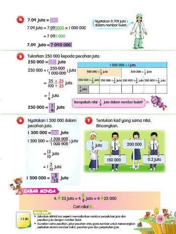 6 Nyatakan 1 300 000 dalam 7 Tentukan kad yang sama nilai.