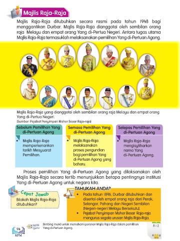 Nota Bimbing murid untuk memahami peranan Majlis Raja-Raja dalam pemilihan 8.1.2
