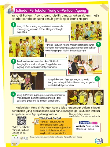 8.1.3 Nota Bantu murid memahami istiadat pertabalan Yang di-Pertuan Agong.