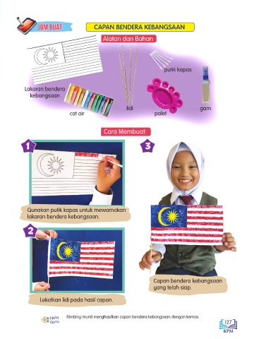 Nota Bimbing murid menghasilkan capan bendera kebangsaan dengan kemas.
