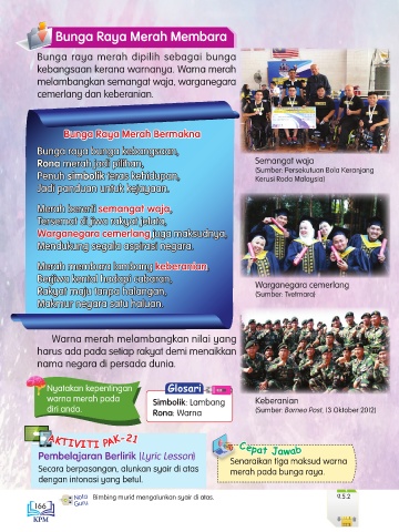 Secara berpasangan, alunkan syair di atas merah pada bunga raya.
