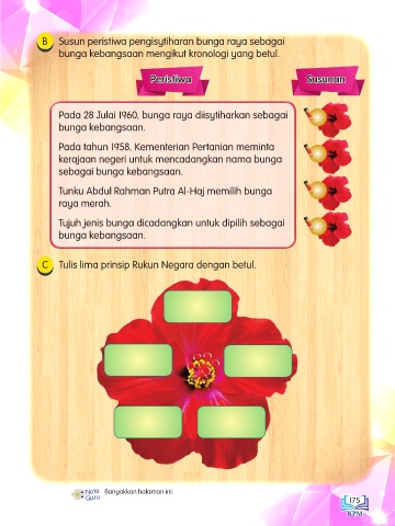 B Susun peristiwa pengisytiharan bunga raya sebagai